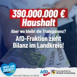 Unsere Position: Transparenz beim Haushalt darf keine Frage der Priorität sein – sie ist eine Pflicht gegenüber den Bürgern! Wenn die Mittel vorhanden sind und die Kosten überschaubar, gibt es keinen Grund, den Bürgern einen interaktiven Zugang zu den Finanzen des Landkreises weiter vorzuenthalten.
